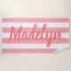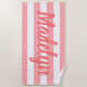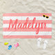 Coral Stripe Script Monogram Name Beach Towel