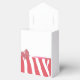 A modern design of coral zebra stripes with a small bow design accents these favor boxes.