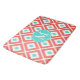 Coral, Turquoise, White Ikat Diamond Pattern Bath Mat