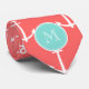 Coral White Anchors Pattern, Mint Green Monogram Tie