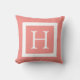 Customizeable modern and trendy coral or peach and white monogram throw pillows or cushions. Personalise your gift by adding your own initial. Choose your own font and colours to make it your own. This classic contemporary design will enhance any home decor, living room, sofa, lounge, bedroom, office, beach house, boat or university or college dorm room, nursery, teenagers, girls, boys, baby or kids rooms. Also great for college or university, teenagers or kids.