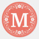 Coral White Floral Wreath Monogram Classic Round Sticker