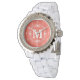 This beautiful wristwatch is perfect for adding a touch of elegance to your wardrobe. It's done in a soft coral colour with a white garland of flowers and dots in a stencil look, with white numbers to match. Add your monogram letter to personalise. You can also customise the coral colour to whatever you'd like! See matching items in our store.