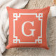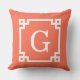 Coral White Greek Key Frame #2 Initial Monogram Cushion