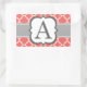 Coral White Monogram Letter A Quatrefoil Rectangular Sticker
