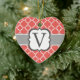 Coral White Monogram Letter V Quatrefoil Ceramic Tree Decoration