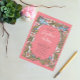 Bright and cheerful, like your planned wedding! Whimsical hand drawn watercolor artwork of two bluebirds on blossom-and-butterfly filled branches, with a draped white ribbon for a touch of festivity! The coral background sets off the pink, green and white artwork beautifully; the back of the card is plain coral with a butterfly and the inspiring words, "...and they lived happily ever after." (You could substitute your own quote, message or names.) All text templates are designed to make it easy for you to add your information.