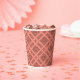 Coral with black geometric pattern paper cups