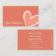 Make a lasting impression with this gorgeous and eye catching business card design featuring a cute pink heart on coral background.