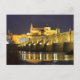 The beautiful architecture of Cordoba, Spain lit up at night with the Roman Bridge and Mosque-Cathedral behind.