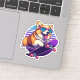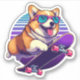 A whimsical corgi sporting cool sunglasses is captured in mid-action, skilfully balancing on a skateboard. The dog's tongue lolls out in a carefree manner, exuding an air of fun and excitement. 80's, synthwave,