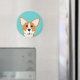 Whimsical Welsh Pembroke Corgi Dog Art Magnet. Click the Customise button to change the background colour to match your kitchen, or to add your own special text!
