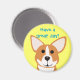 Whimsical Pembroke Welsh Corgi Dog Art Magnet. "Have a great day!" Click the Customise button to change the background colour to match your kitchen, or to change the greeting!
