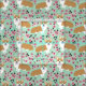 corgi cherry blossom mint fabric