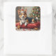Corgi Dog Christmas Loaf with Santa Crown Art Square Sticker