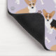 Cute Corgi dogs with fawn, red and tri coat colours with paw prints and dog bones pattern.