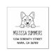 Simple cartoon illustration of a happy corgi peeking from behind a divider. Only its head and front paws are visible. Customise with your own address.