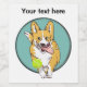 A funny and cute cartoon illustration of a corgi dog chasing a ball. The dog is panting, with it's tongue flapping as it runs after the tennis ball.