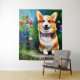 This vibrant graphic art of a beloved corgi dog surrounded by a plethora of colourful flowers is a sight to behold!