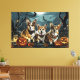 Unleash the spooky spirit with this eerie Halloween design featuring a pack of dogs under a dark, moonlit sky, surrounded by flying bats and glowing pumpkins. Perfect for those who love a touch of frightful fun with their furry friends!