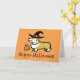 Izzy the corgi is all dressed up and ready for Halloween in this adorable greeting card.