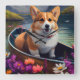 Corgi on a Paddle: A Scenic Adventure Square Wall Clock