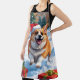 A cheerful Corgi runs playfully through the snowy winter scene, wearing a festive red Christmas hat. This joyful design highlights the breed’s short legs, fluffy coat, and lively personality while capturing the warmth and charm of the holiday season. A heartwarming winter moment full of festive spirit.