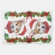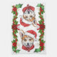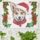 Cute corgi in a Santa hat with Christmas greenery, holly, bows and poinsettias. Red and Green.