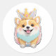 Happy corgi with tiny crown and wagging tail in pastel colours.