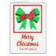 Welsh Corgi dog silhouette in with red Christmas paper abstract pattern and green bow. Christmas and New Year message inside can be changed to anything you want. Personalise with name below the Merry Christmas or just add happy new year.