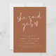 This bridal shower invitation features an edgy handwritten font and modern minimalist design with a boho terracotta and white colour combination. Edit all colours and *most* wording to meet your needs. This bridal invite is perfect for the contemporary or industrial bride. Add a photo onto the backside for a unique personal touch.