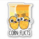 Corn-flicts Funny Corn Flakes Pun features a cute pair of cornflakes having a conflict. Perfect pun gift for family and friends who love cute cornflakes puns.