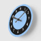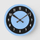 Cornflower Blue and Black Circles Round Clock