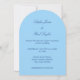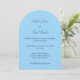 Featuring elegant lettering printed on arch-shaped card, this wedding invitation has a sophisticated traditional look and is easy to personalise using the online personalisation template before ordering. The invitation features elegant dark blue text on a beautiful cornflower blue background.
