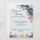 Cornflower Blue & Copper Floral Wedding Save The Date