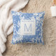 Stylish, William Morris-inspired cornflower blue floral monogram throw pillow. The design shows a cornflower blue and white floral pattern based on Morris' Vintage Blumen Kunst print. The white square in the middle contains Christian quote based on Psalm 46:10 - Be still and know that I am God. All text is CUSTOMIZABLE so you can add your name, your initial and/or create your own text. Choose from a wide selection of Christian home decor and gifts designed by Berean Designs.