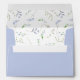 A pretty wedding envelope in cornflower blue with a pattern of light blue flowers and greenery inside.