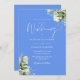 Cornflower Blue Greenery Leaves Monogram Wedding Invitation