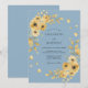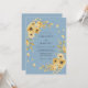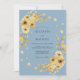 This design features a tranquil cornflower blue background adorned with radiant yellow watercolor roses and golden foliage. The painterly floral arrangement cascades gracefully, creating a romantic and airy aesthetic perfect for a bright spring or summer event. Soft petals in shades of amber and sunshine yellow provide a striking contrast.