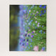 A field of cornflowers in shades of deep and pale blue, purple, lavender, and pink, with pale green leaves.
