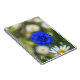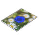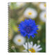 A beautiful close up photograph of a blue cornflower printed on the cover of a notebook.