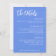 The back of the invitation features essential details on a light blue background, reminiscent of the cornflowers on the front. These details include transportation, accommodation, reception information, and your wedding website address. This modern addition ensures that your guests stay connected and informed about every aspect of your celebration.