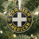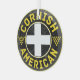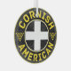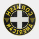 Circle design in black, yellow and white featuring the Cornish flag and the Duke of Cornwall ensigns. With the text Cornish American around it.