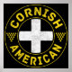 Circle design in black, yellow and white featuring the Cornish flag and the Duke of Cornwall ensigns. With the text Cornish American around it.