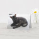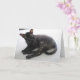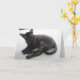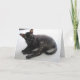 A beautiful example of the Cornish Rex breed, with curly hair in a Marseille pattern, long legs, and bat-like ears.