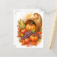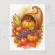 Celebrate the spirit of abundance with this elegant Thanksgiving postcard featuring a watercolor-style cornucopia filled with pumpkins, apples, corn, grapes, and fall leaves.