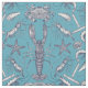 Crustacean damask, originally drawn in ink. Features edible crab, blue European lobster, common prawn, brown shrimp, common crab, scallop shell, mussel shell, razor shell and starfish.