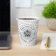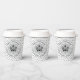 Black and white paper cups showing the official Coronation Emblem of King Charles III 2023