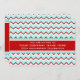 Customisable company anniversary party invitations in modern and contemporary teal turquoise blue, red and white zigzag chevron pattern. Celebrate your business's many happy years serving your customers with these unique custom office anniversary party invitations.