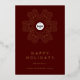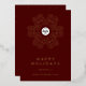 Send season’s greetings in style with this corporate Christmas holiday card template featuring a festive red background, real gold foil snowflake design, and your custom company logo in the centre. Perfect for businesses wanting to spread holiday cheer to clients, suppliers, and employees, with elegant serif fonts, a personalised “Happy Holidays” message on the front, and space on the back for a custom note and your website (you can also remove the message on the back if not required).. You can choose from gold, silver and rose gold foil.